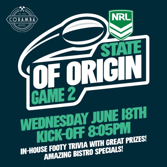 Donโt miss out on State of Origin Game 2 live at Coramba Hotel!