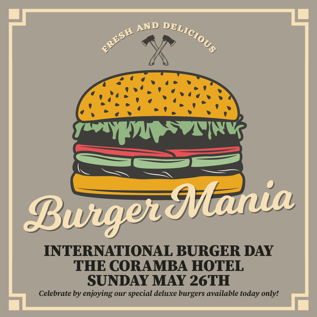 ENJOY INTERNATIONAL BURGER DAY AT CORAMBA HOTEL, SUNDAY 26TH MAY