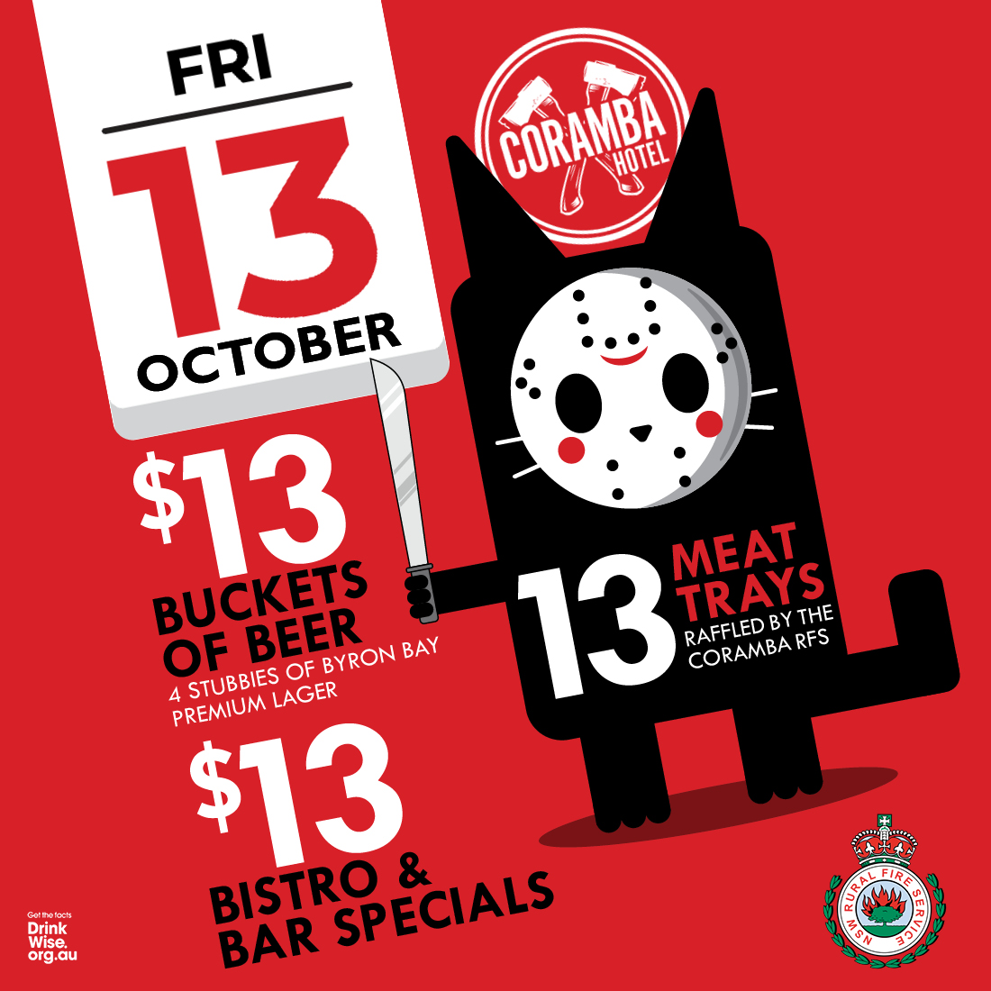 Come down and join us for our Friday the 13th celebration. We have Coramba RFS...