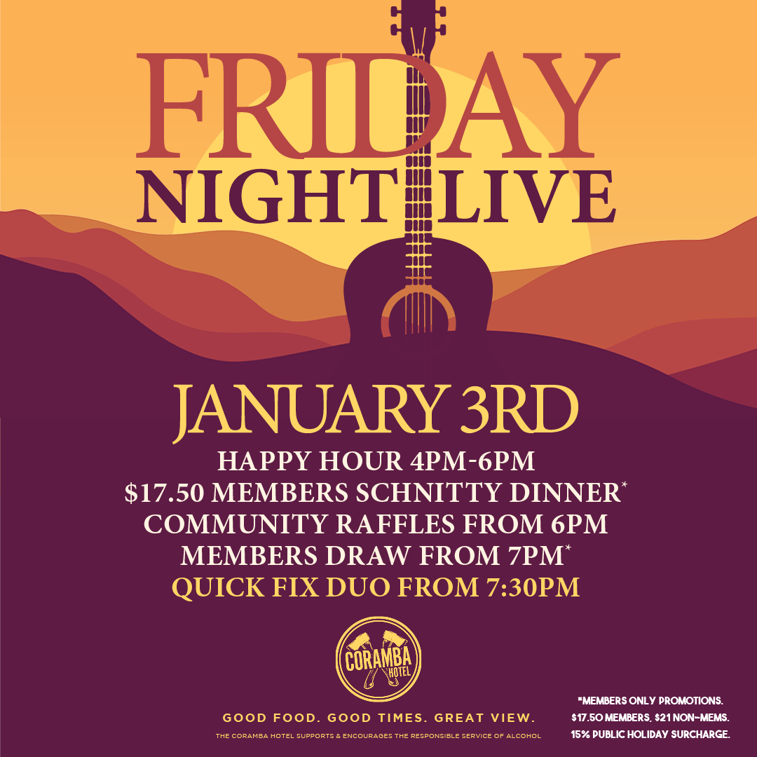 Every Friday at the Coramba Hotel join us for: - 4-6pm Happy Hour - Raffles...