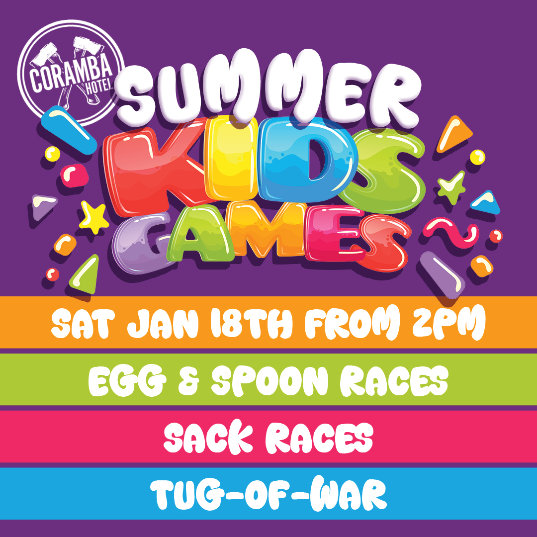 Join us for the summer kids games, Jan 18th from 2pm. We have a jam...